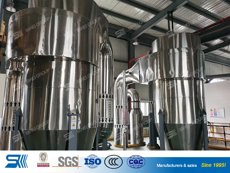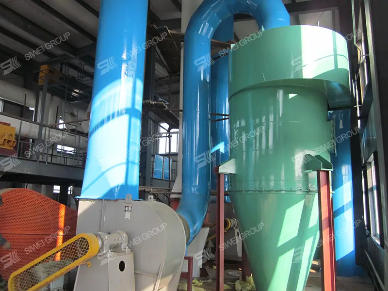 Cyclone dust collector is a type of dust collector, which is composed of two inner and outer cylinders, a conical cylinder, an air inlet and an ash discharge port (discharge). The inner and outer cylinders and the ash discharge port are located on the same axis. After the air containing dust (material particles) enters tangentially along the air inlet on the upper part of the outer cylinder at a high speed, it rotates in a spiral shape at high speed from top to bottom between the inner and outer cylinders and at the cone. During the rotation, the dust particles are thrown to the inner wall of the outer cylinder under the action of large centrifugal force, and gradually lose speed due to collision and friction with the wall. Then, under the action of gravity, they fall along the cylinder wall to the cone part, and then from the bottom Ash discharge port. When the airflow approaches the lower end of the cone, due to the air-closing device installed at the outlet, the air cannot flow out from the bottom, starts to reverse and rise again and is then discharged through the inner cylinder.