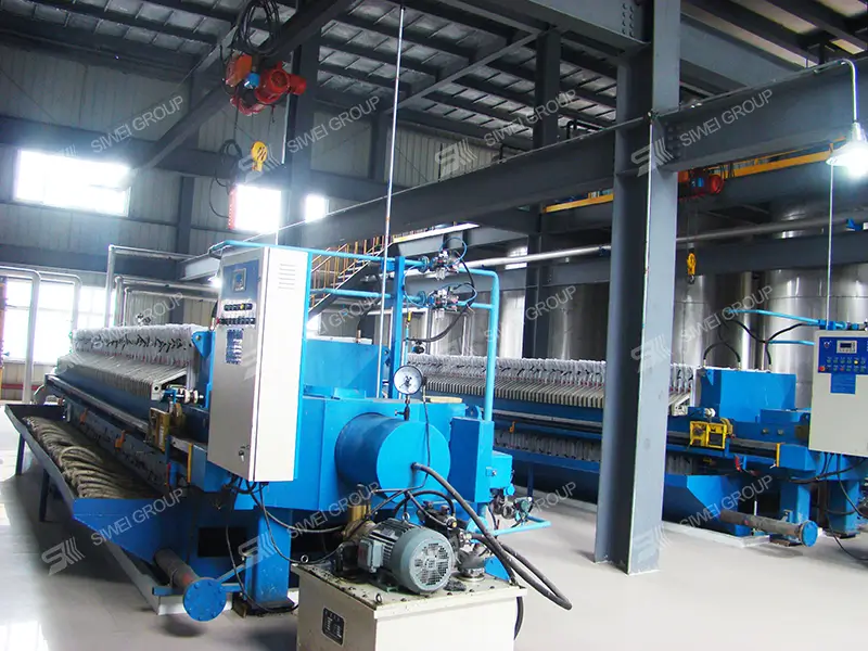 - Finally, the mixture of oil, wax and stearic acid is conveyed to a filter press for separation after reaching the required fractionation temperature. The palm stearin is separated and the palm olein is collected.